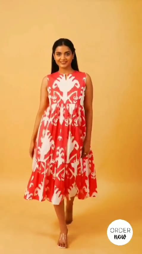 Abstract print pure cotton three tiered maxi dress with more than 3 mtrr flare adding convenience without compromising on style.We got you covered for the upcoming summer*