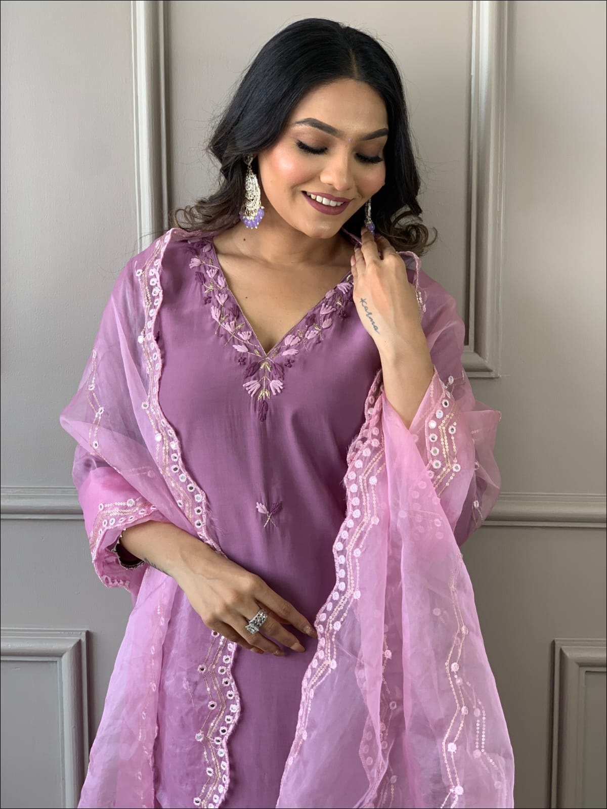 For this festive season we have launched , Premium soft chanderi silk kurti with lining which has a beautiful heavy embroidery work and soft silk pants with lining and organza embroidred duppta