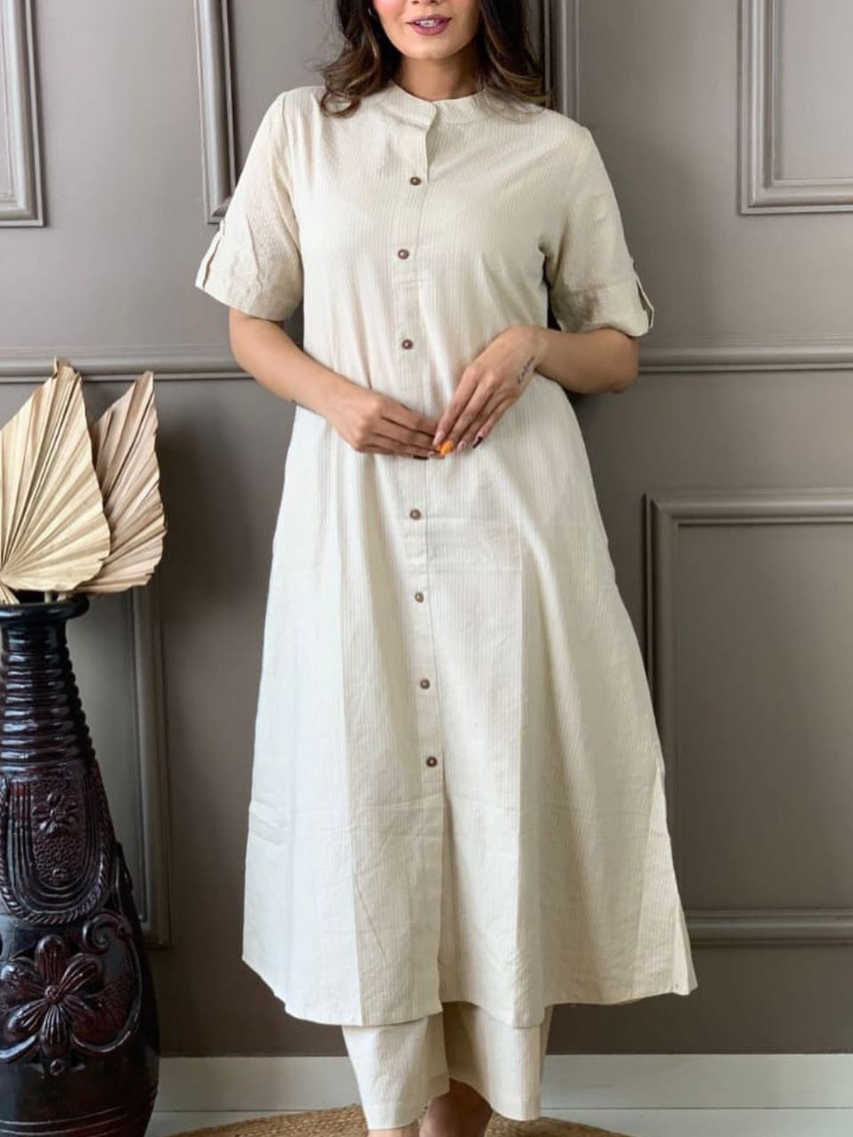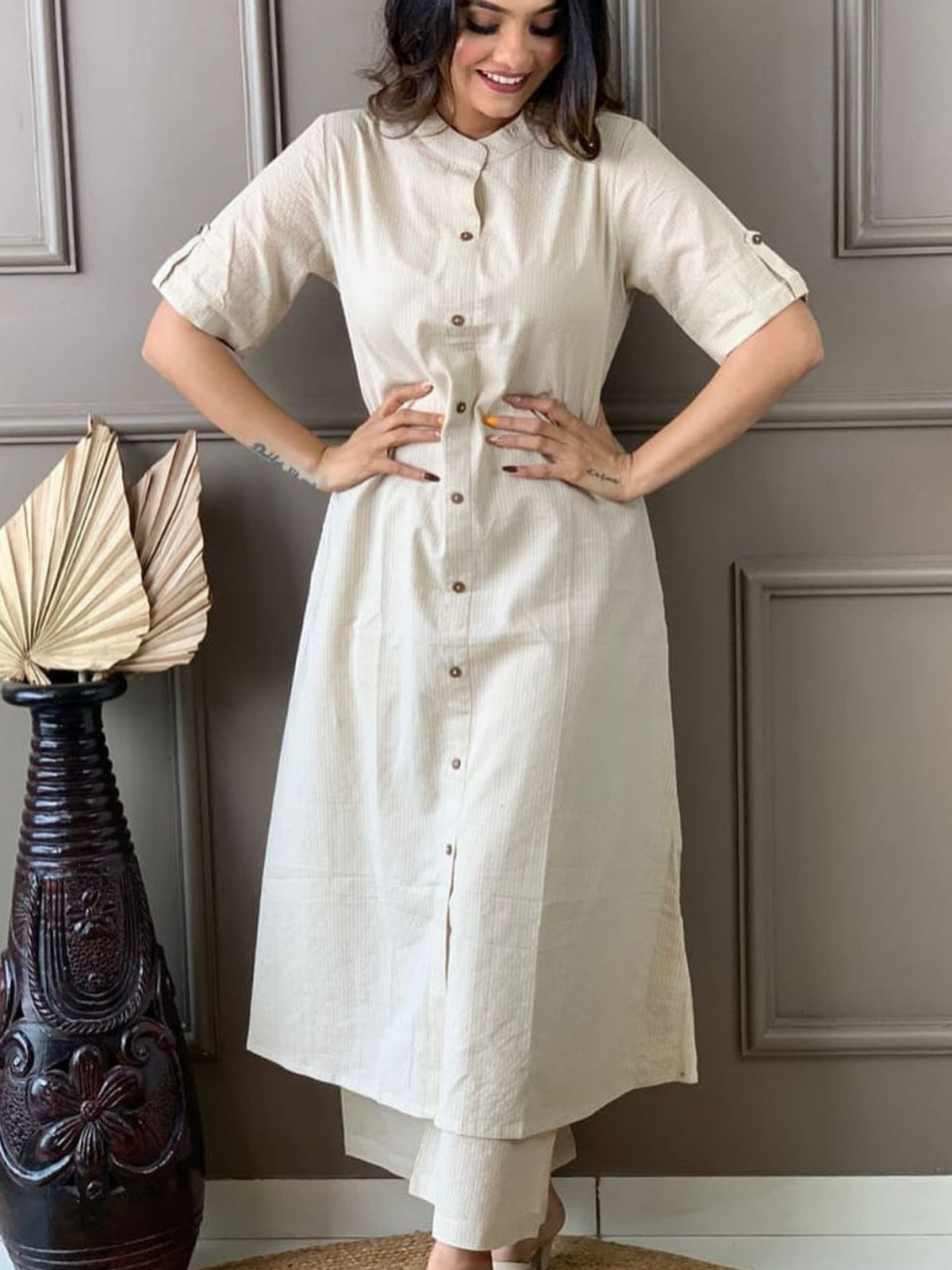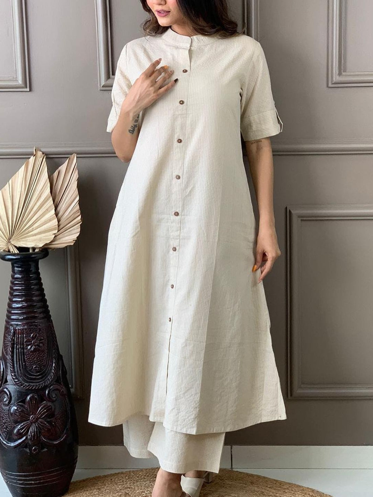 This designer co-eod set in aline kurti pattern is paired with ankle length palazo which makes it a perfect outfit and correct choice for you.....