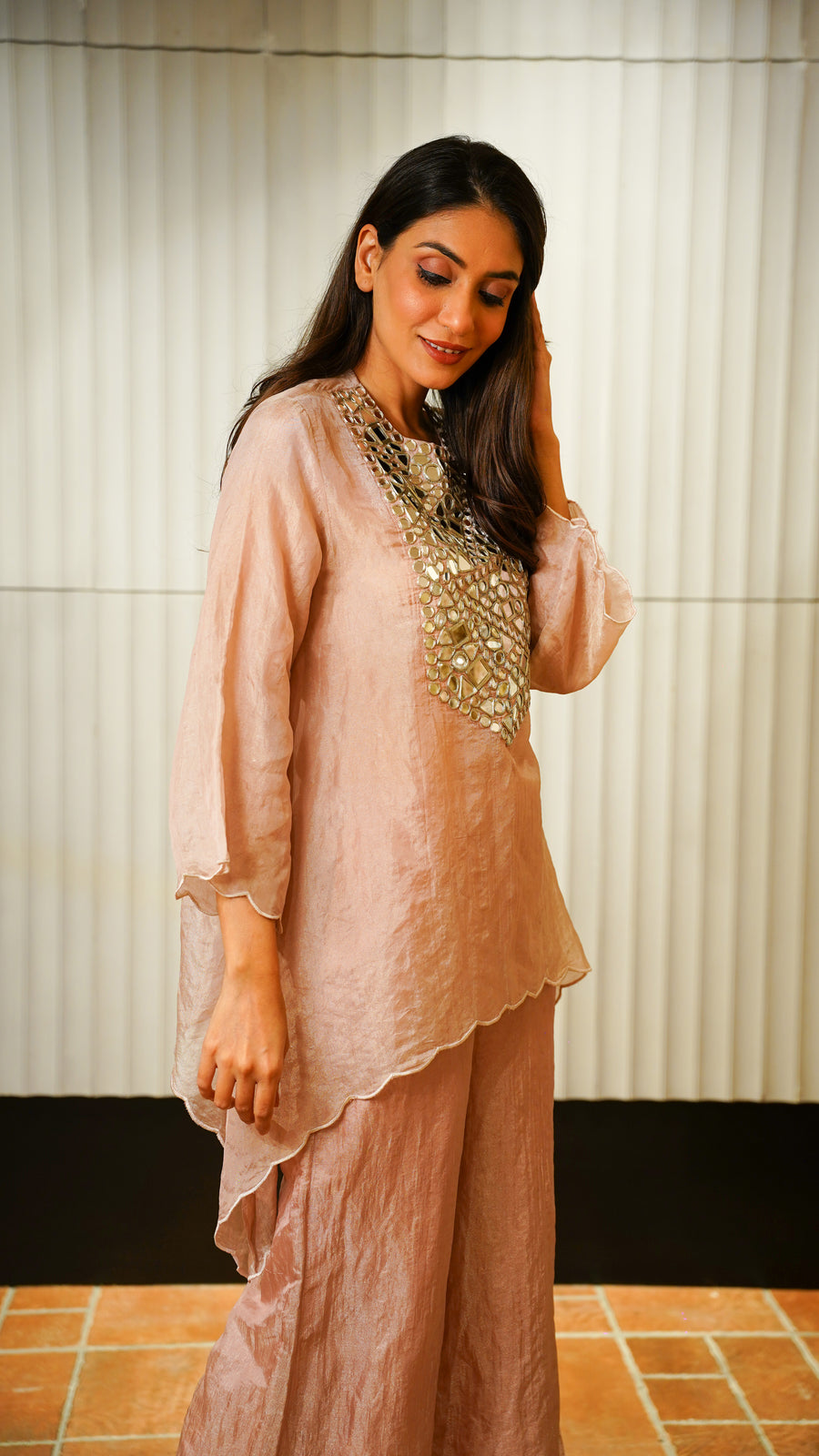 This Mirror Embellished Tunic and Flared Pant set is the perfect combination of style and comfort. The mirror embellishments add a touch of glamour while the flared pants provide a flattering and comfortable fit. Made with high-quality materials, this set is a must-have for any fashion-forward wardrobe.