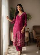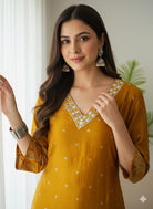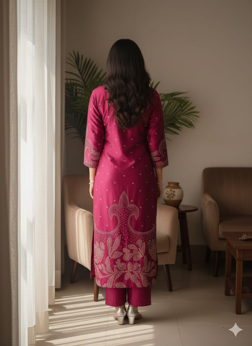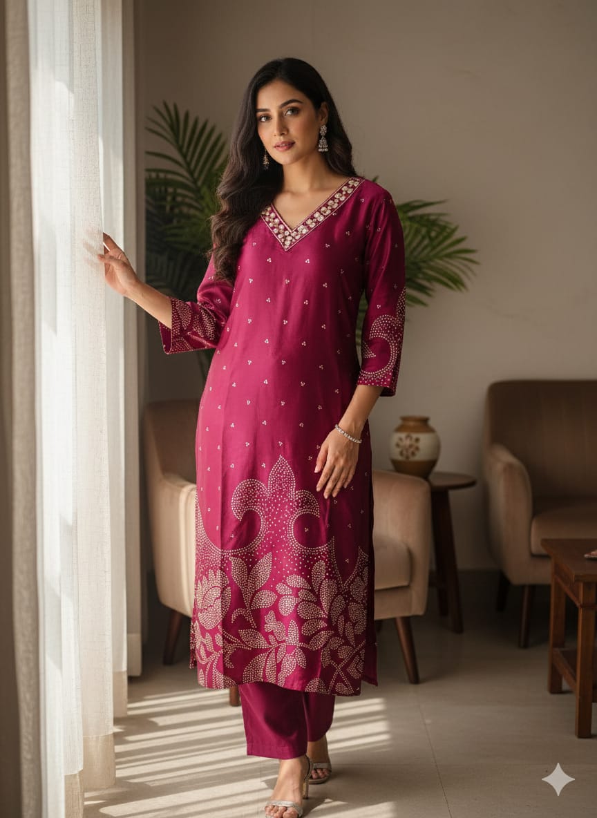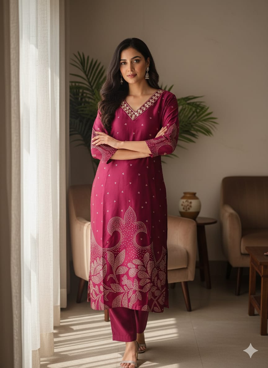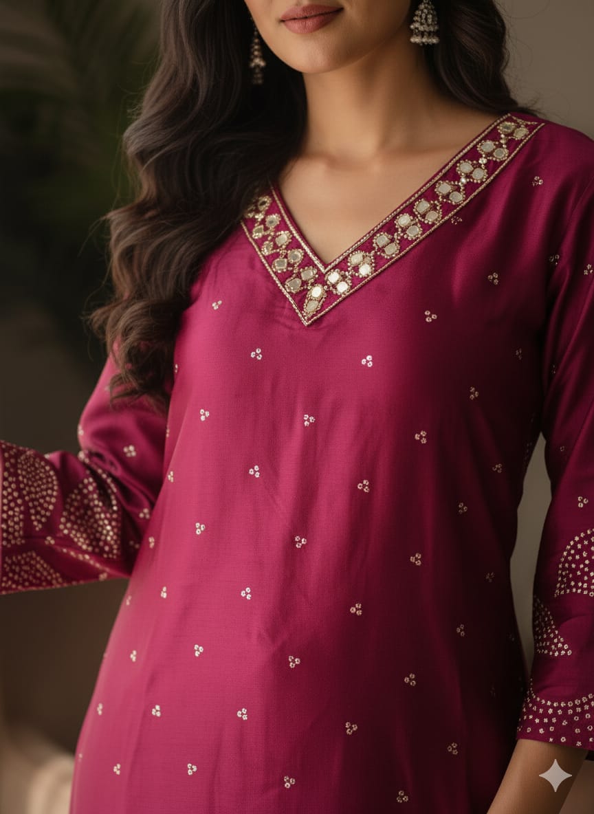 Introducing the Mirror Work Gaji Silk Ethnic Wear, expertly crafted with intricate mirror work on luxurious Gaji silk. Elevate your ethnic wear collection with this stunning piece, perfect for special occasions. Experience the luxury of Gaji silk and the beauty of traditional mirror work in one exquisite garment.