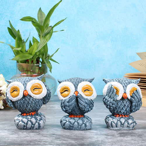 Set of 3 Owl Statue Showpeice