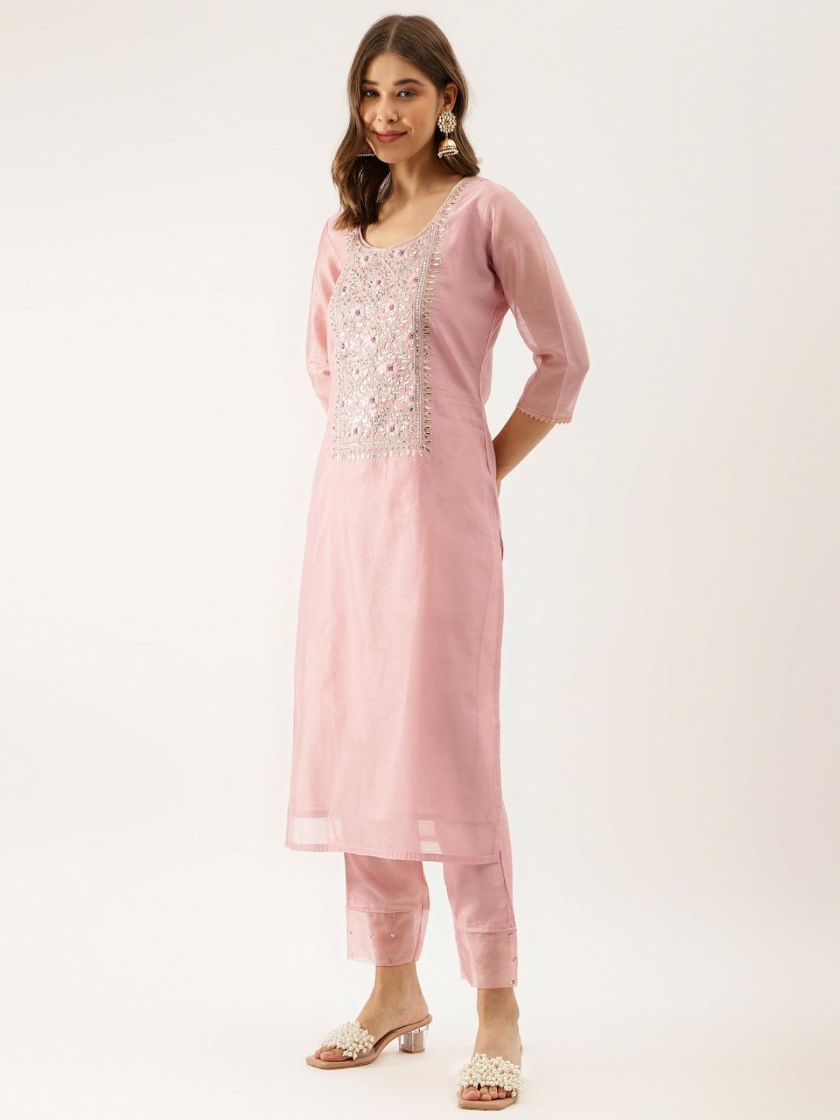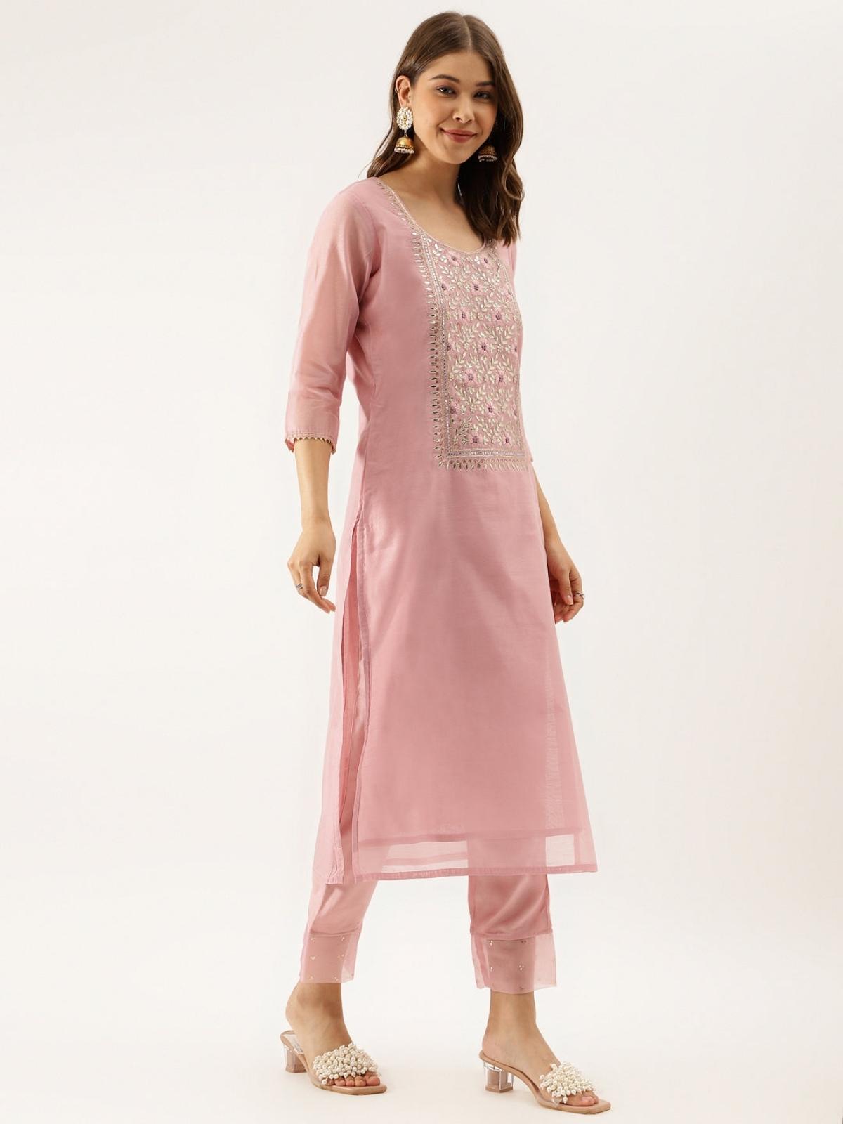 If you are looking for exquisite style in coming festive season and comfort you should try this awesome outfit by kumi clothing. Indulge in style pink printed kurta pants sets, straight hemline, and it has three-fourth sleeves . Best suited for formal and informal gatherings.