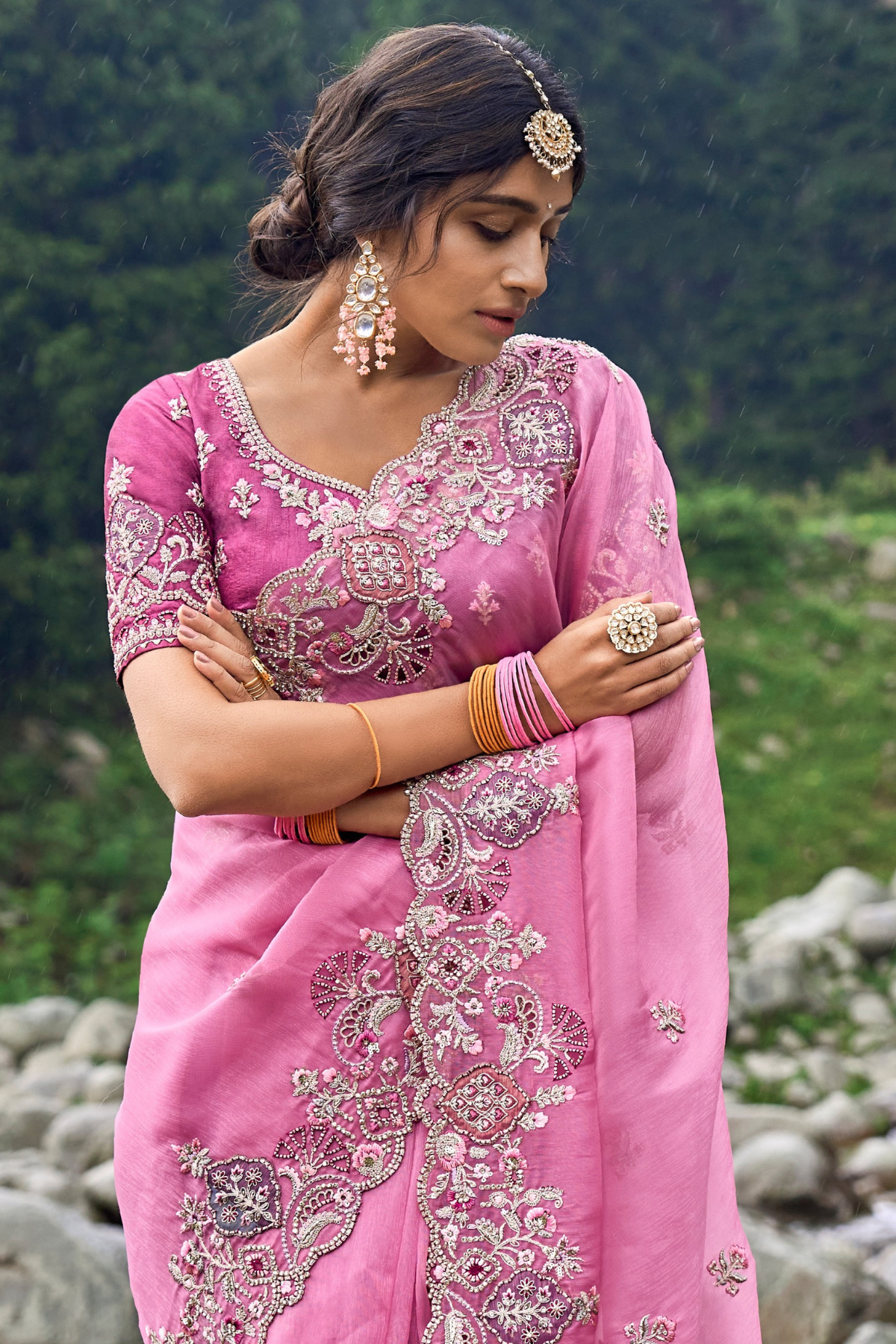 Saree -  Pure Banarasi Silk With Designer Hand Worked Border(5.5 Meter)