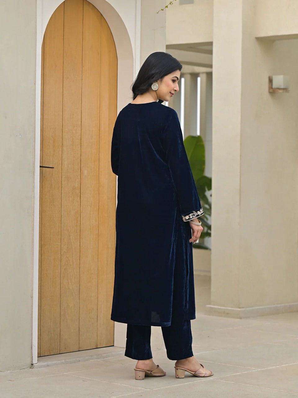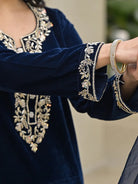 Crafted from luxurious velvet fabric, this ethnic outfit exudes elegance and sophistication. The included organza dupatta adds a touch of delicacy to the ensemble. Perfect for any special occasion, this outfit is sure to make a statement and leave a lasting impression. Experience the beauty and comfort of this stunning piece.