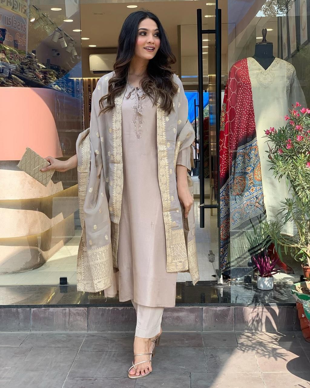 Featuring beautiful Heavy Suit Set which is beautifully decorated with intricate original handwork, Zari weaving . It is paired with matching pants and jacquard Dupatta.*