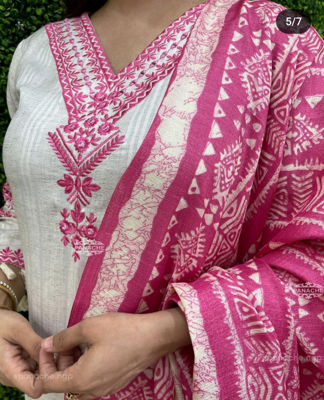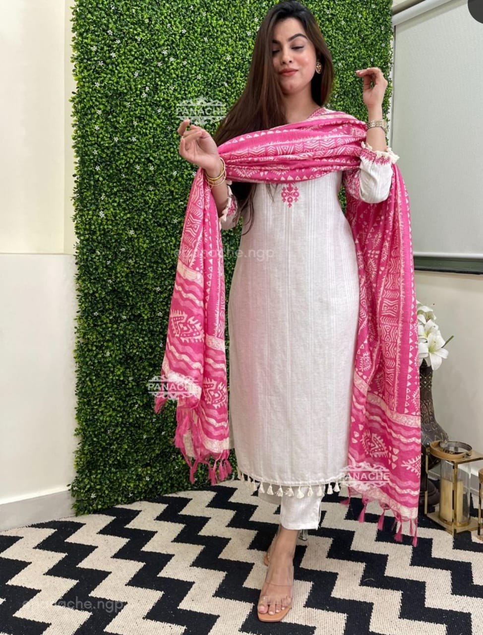 Pure fine KATHA COTTON fabric Straight kurti with pant and dupatta.